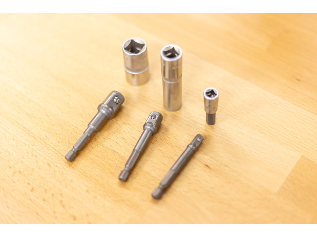 Pozn.: Adaptéry nejsou stavěny na vysoký utahovací nebo povolovací moment, přesto velmi usnadní „natočení” např. šroubů kol na autě. Prvotní povolení nebo finální dotažení nutno provést klasickou ráčnou nebo utahovákem.
