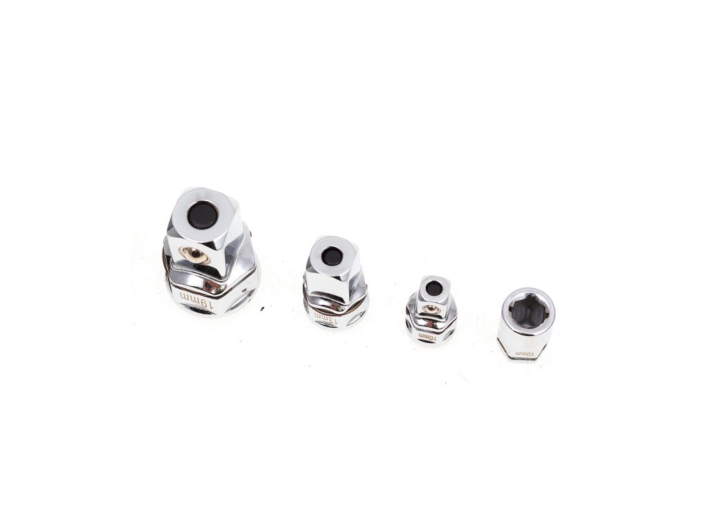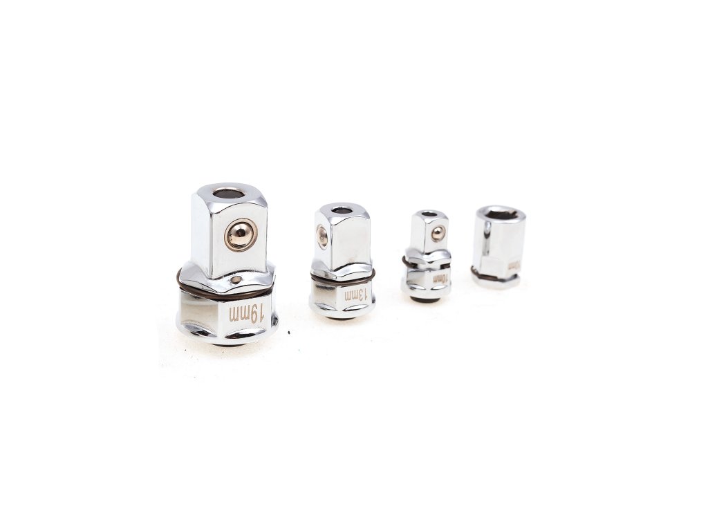 Velmi užitečná sada adaptérů, pomocí nichž z ráčnového klíče v okamžiku vytvoříte klasickou ráčnu, na kterou můžete nasadit hlavice (ořechy) s běžným čtyřhranem.