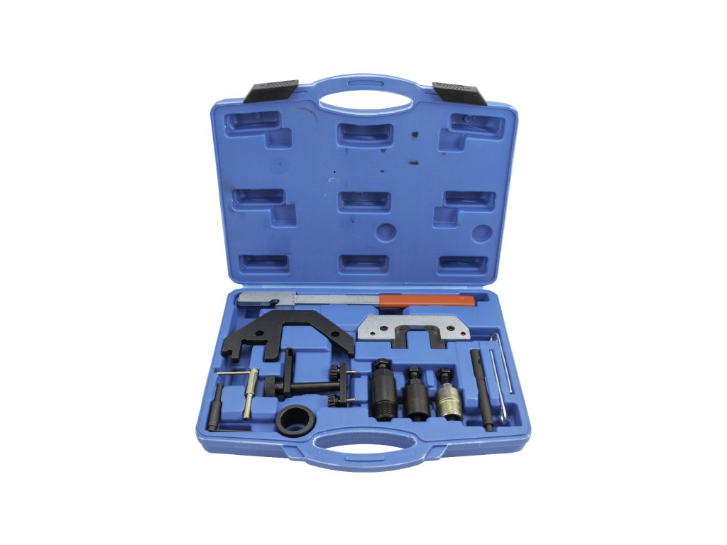 Komplexní sada nástrojů pro zajištění a nastavení rozvodů v motorech automobilů BMW a Land Rover.