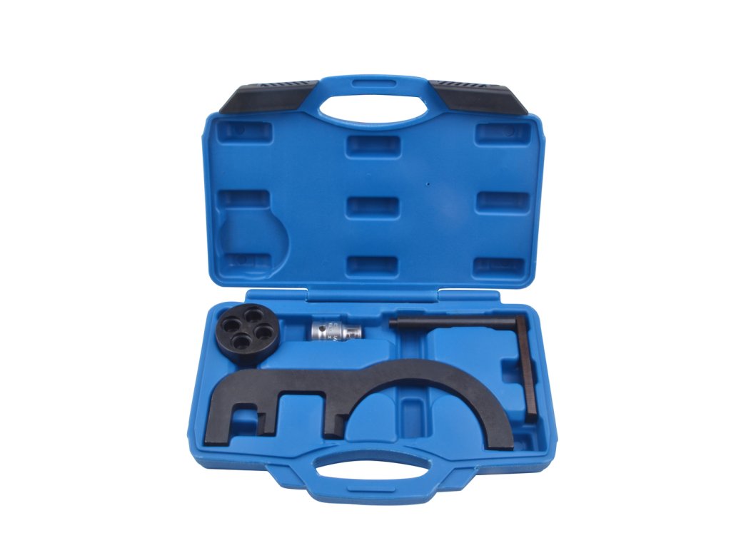 Sada rozvodového nářadí pro vznětový motor BMW 1.6, 2.0L N47 a 3.0L N57 poháněný řetězem vyrobený v letech 2003 až 2019. Určeno k seřízení a nastavení rozvodového řetězu, výměně těsnění hlavy válců a demontáži řetězového kola palivového čerpadla.