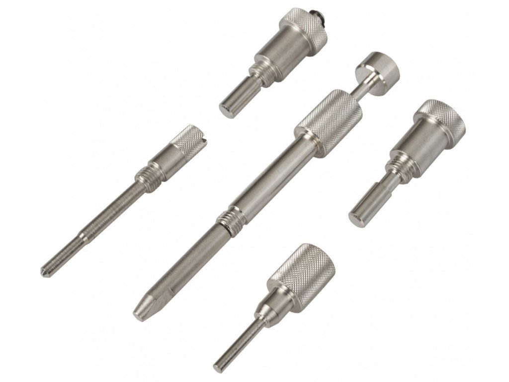 Sada rozvodového nářadí pro zablokování vznětového motoru Fiat, Iveco 2,3L JTD (poháněný řemenem), 3,0L JTD (poháněný řetězem) a Citroen, Peugeot 3,0L Hdi (poháněný řetězem). Sada obsahuje seřizovací kolíky vačkového hřídele, pojistný kolík klikového hřídele potřebný pro motory vyrobené v letech 2006-2008 a pojistný kolík snímače. Vysokotlaké čerpadlo nevyžaduje blokování.