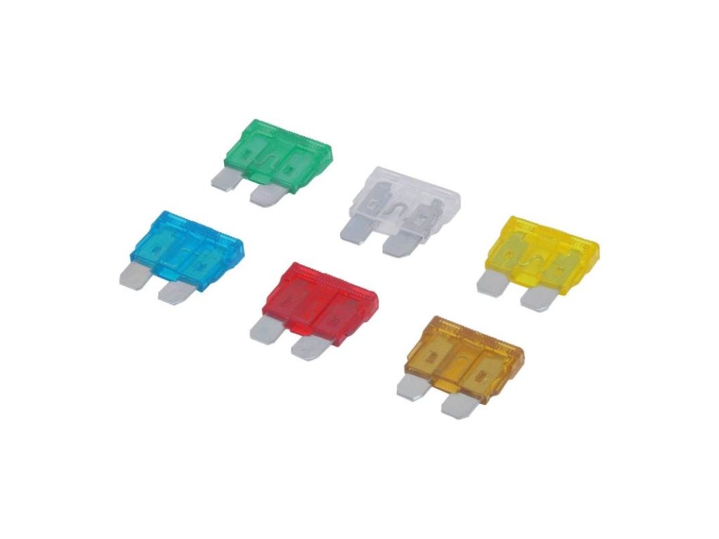 Standardní, nožové, ploché elektro pojistky, pro proud 5-30 A, sada 120 kusů v plastové krabičce – ASTA A-TC509