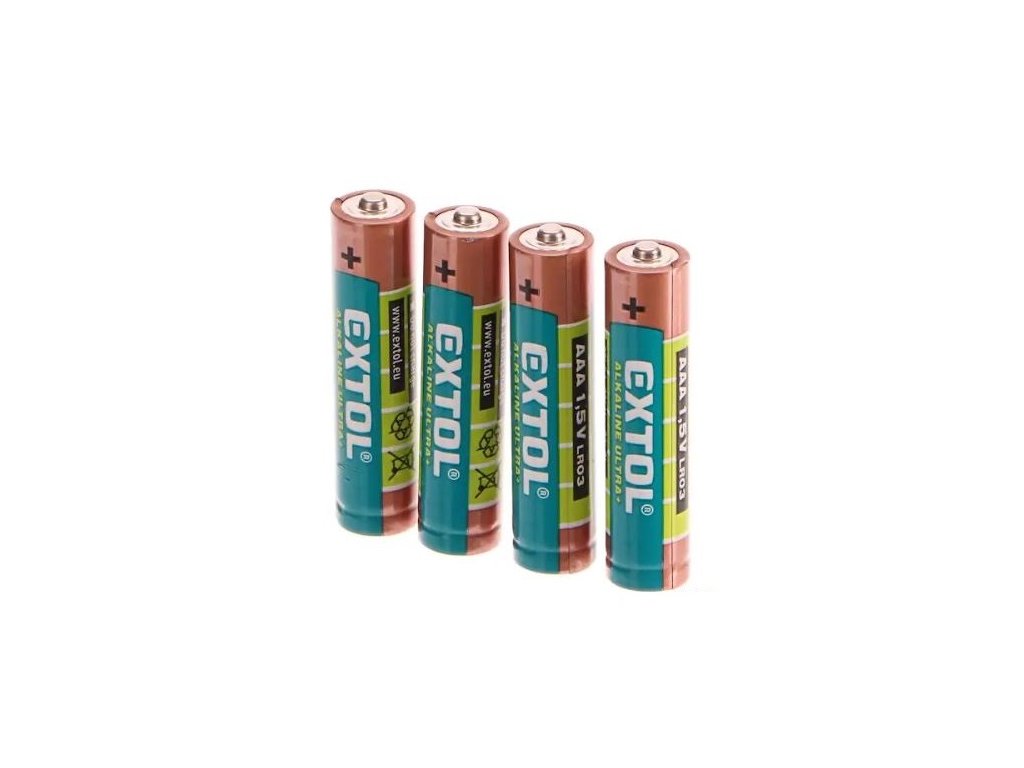 Baterie alkalické ULTRA +, 1,5V AAA (LR03), sada 4 kusy - EXTOL LIGHT EX42010