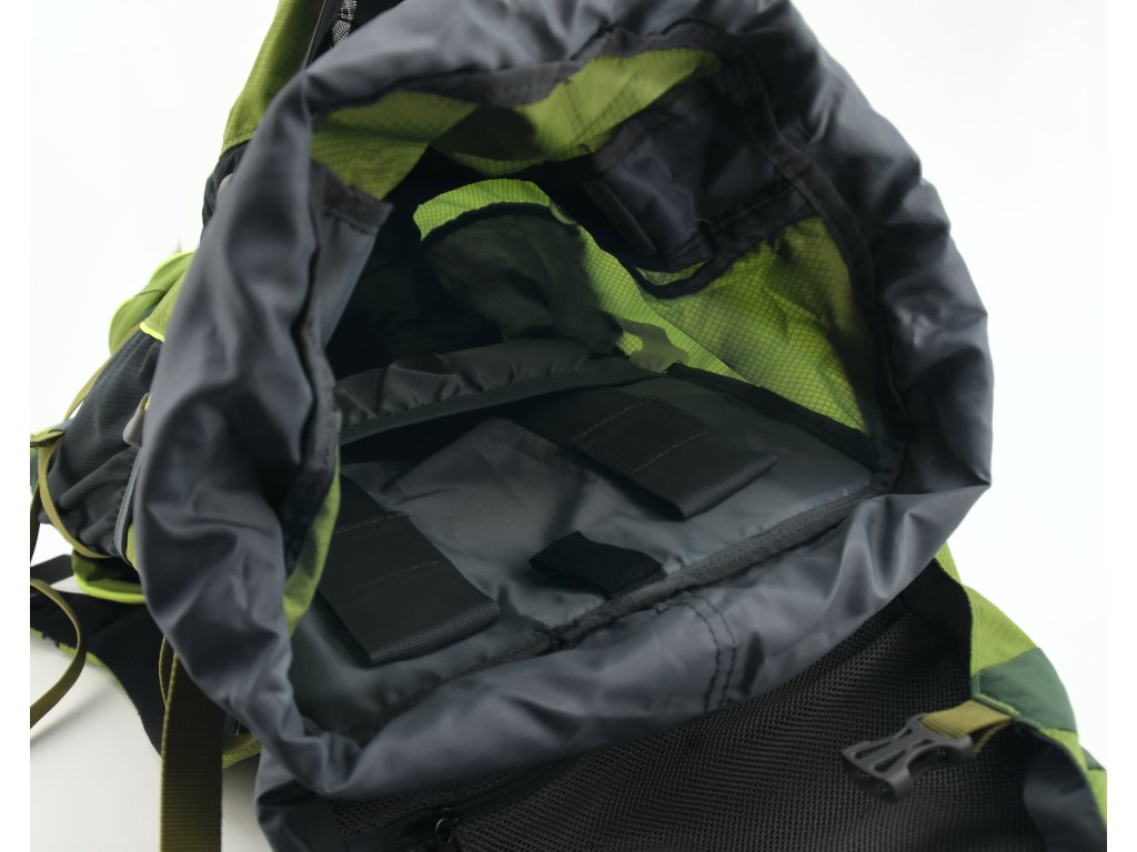 Hlavní prostor se dvěmi stahovacími šňůrkami a zapínáním klipsem, je opatřen pokrývkou se zapínáním. Uvnitř je vložená kapsa větších rozměrů. Pod hlavním prostorem batohu je navíc kapsa, která je z venku přístupná i pro naplněném batohu. Spodní čas je opatřena opaskem se zapínacími kapsami pro drobnosti.