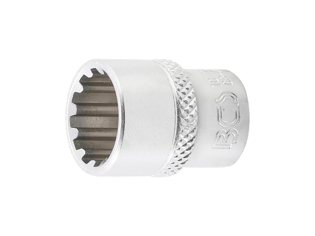 Nástrčná hlavice BGS Technic Gear Lock - Multiprofil Vroubkovaná Materiál: Chrom-vanadová ocel Zušlechtění povrchu: Matně chromováno Profil pohonu: Vnitřní čtyřhran Profil výstupu Gear Lock (Multiprofil) Nástrčné hlavice s profilem GearLock Hlavice s profilem GearLock umožňují bezpečné použití na 6hran, 12hran v palcovém i metrickém provedení, XZN a E-profil šroubů i matic.Doplňkové parametry