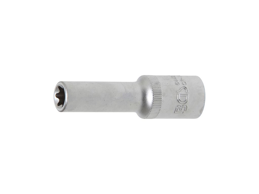 Prodloužená nástrčná hlavice BGS technic E-profil (pro Torx) Vroubkovaná Materiál: Chrom-vanadová ocel Zušlechtění povrchu: Matně chromováno Profil pohonu: Vnitřní čtyřhran Profil výstupu: E-Profil Obal vhodný k zavěšení na zdiDoplňkové parametry