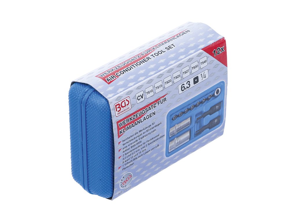 Bity a hlavice TORX TS (5cípé) na servis klimatizace, sada 12 ks - BGS 2275