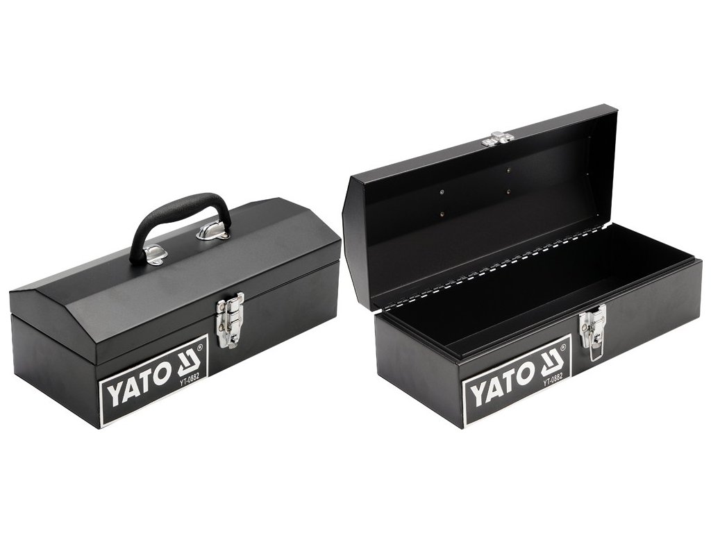 Kovový box na uložení nářadí s madlem pro snadné přenášení.
