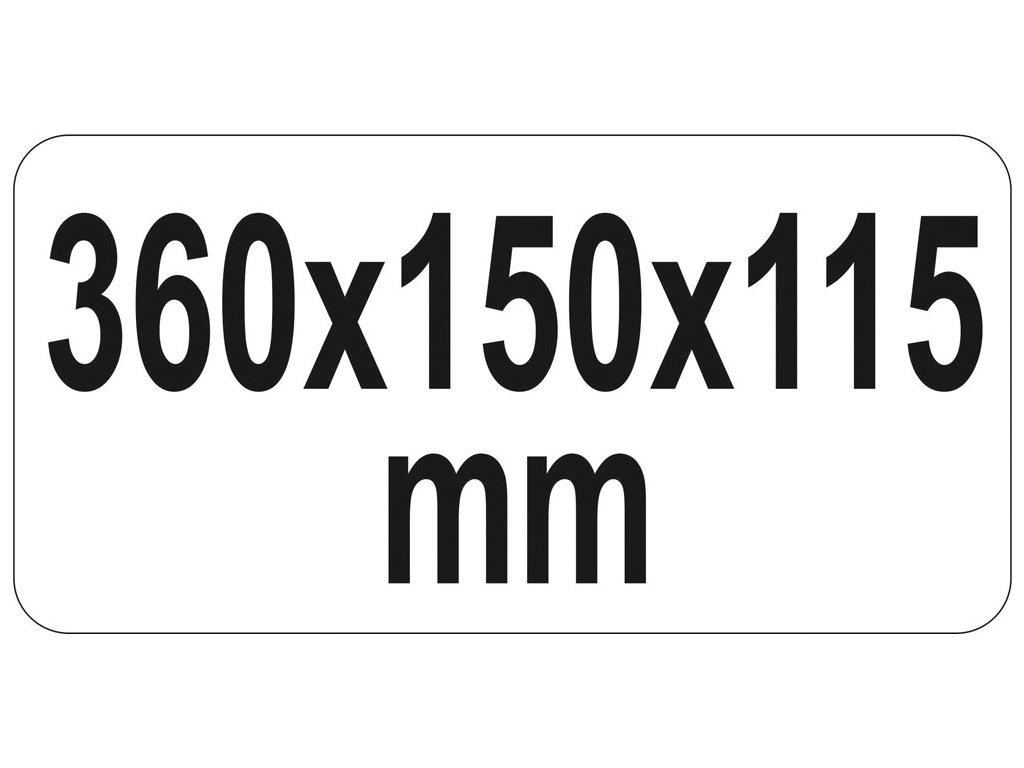 Box rozměrů 360 x 150 x 110 mm s váhou 1,4 kg je vyroben z ocelového plechu.