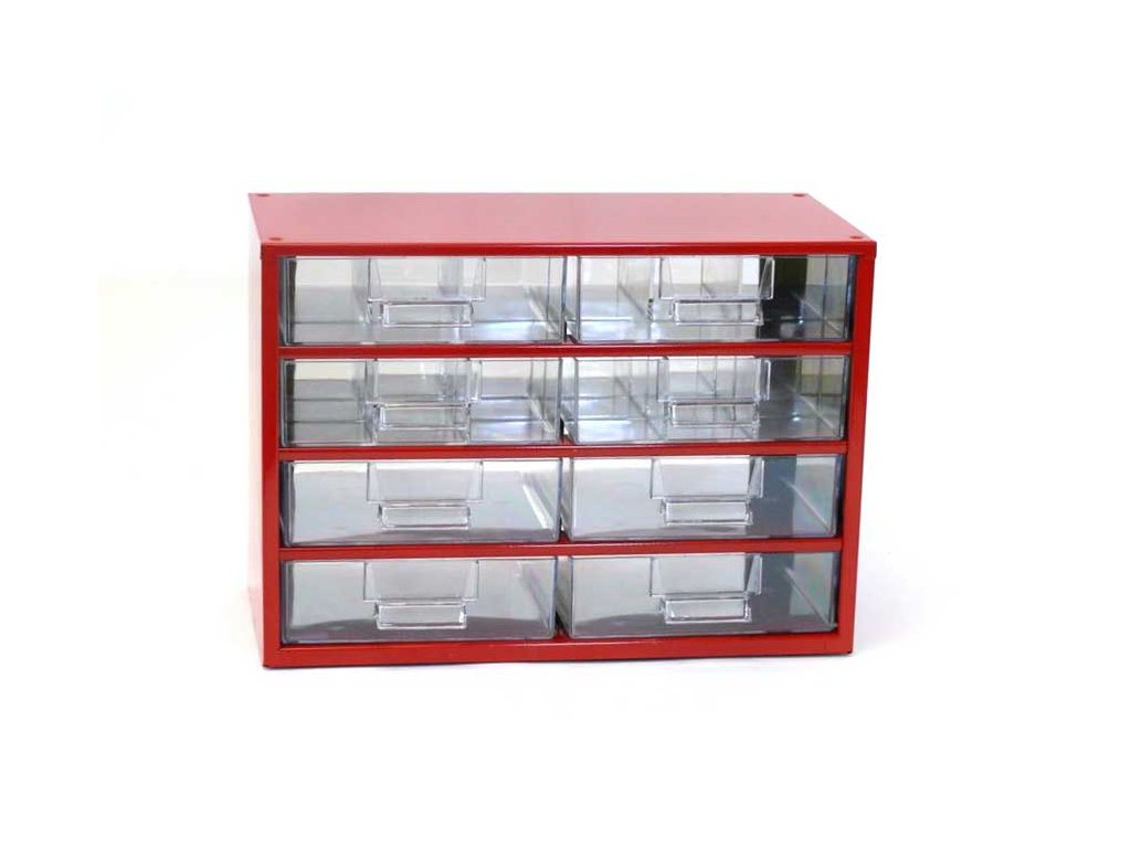 Závěsná skříňka – box na nářadí MARS 7821 Modelová řada 78xx 8 přihrádek typu F – vnitřek je rozdělený na 4 oddělení (1 podélně s čelní stěnou, 3 napříč) Rozměry přihrádek: 50 x 163 x 163 mm Možnost výběru mezi modrým a červeným lakováním. Vyrobeno z ocelového plechu s povrchovou úpravou práškovým lakem. Zásuvky a přepážky z pevného materiálu PS – Polystyrol. Praktický doplněk pro dílnu, servis, výrobní provozovnu i domácí garáž.Doplňkové parametry