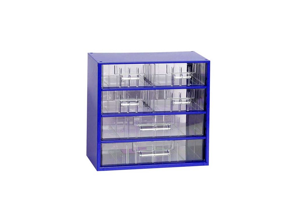 Kvalitní a odolné skříňky Mars, které nesmí chybět ani ve Vaší dílně, jsou vyrobeny z ocelového plechu a opatřeny odolným práškovým lakem. Čiré zásuvky a přepážky jsou vyrobené z trvanlivého materiálu PS(polystyrol).