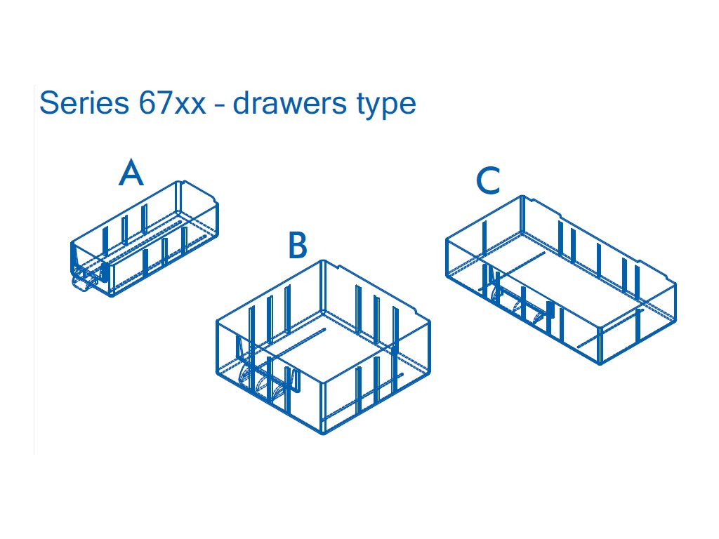 Závěsné skříňky lze volně postavit, stohovat jednu na druhou(podstava je opatřena plastovými nožičkami), nebo zavěsit na stěnu. Skříňky jsou vyráběny v různých velikostech a variantách velikosti a uspořádání zásuvek. Skříňky lze kombinovat a tvořit z nich kompaktní celky.
