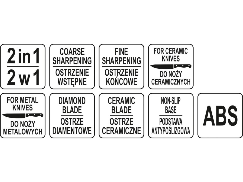 Brousek je opatřen 2 čepelkami. Diamantová je určená pro předostření ocelových a keramických nožů. Keramická čepel je určená pro doostření nožů.