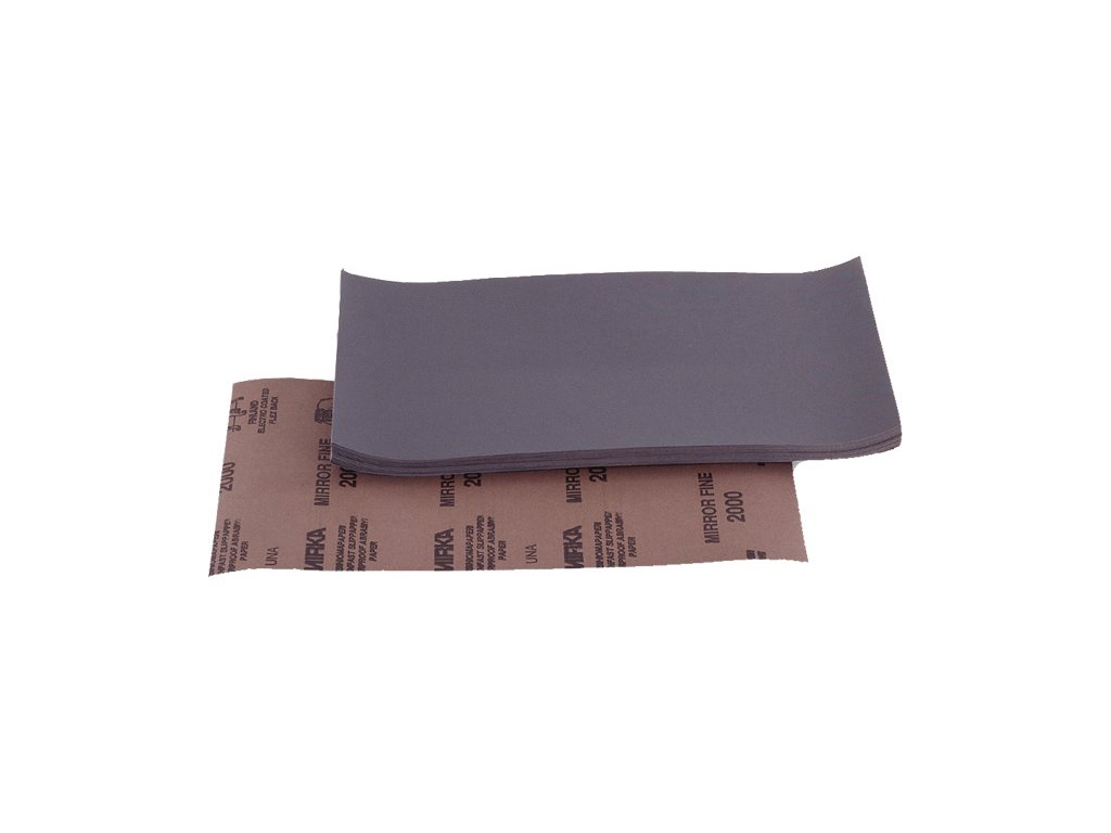Smirkový papír (tzv. smirek), voděodolný pro mokré broušení, archy 230 x 280 mm – MIRKA Různé hrubosti pro hrubé broušení (např. po tmelení) až po velmi jemnou přípravu pod lak, popř. broušení přímo laků. Optimální výsledek je nejlépe dosažitelný pomocí brusného držáku (tzv. špalíku). Papír je impregnovaný latexem – nerozmočí se, vazba brusného zrna je velmi odolná a papír se neopotřebovává tak rychle, jako standardní výrobky. Jednotný obsah balení je 50 kusů. Vysoce kvalitní produkt známého finského výrobce.Doplňkové parametry