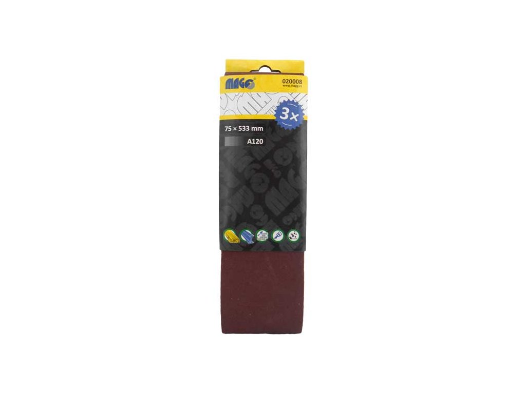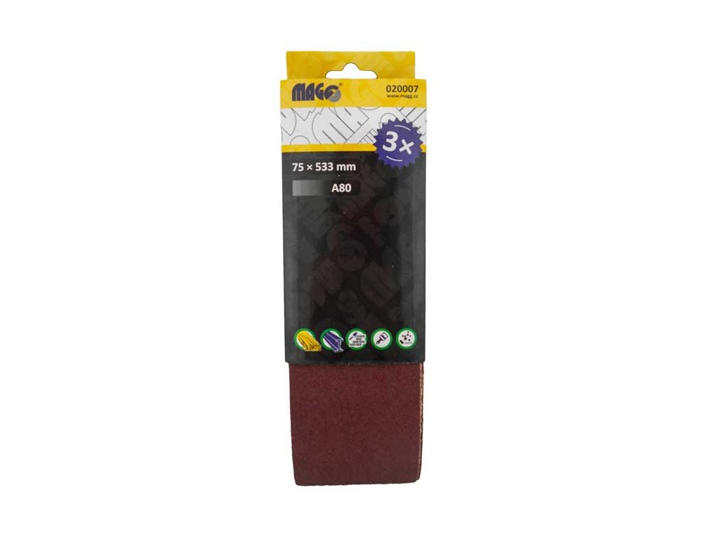 Prodej brusných pásů různých zrnitostí značky MAGG (tzv. smirek) Rozměr: 75 x 533 mm. Určeno pro pásové brusky. Obsah balení: 3 kusy.Doplňkové parametry