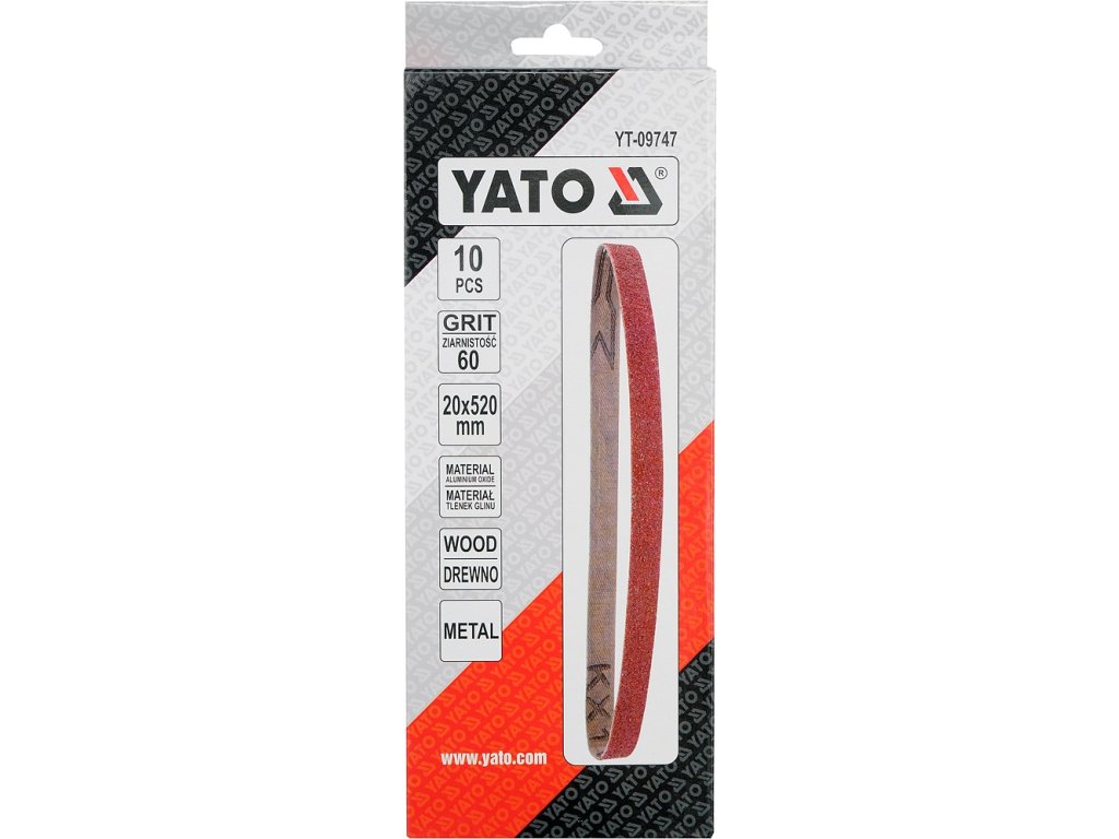 Brusné pásy pro brusku YT-09742, zhotovené z oxidu hliníku.