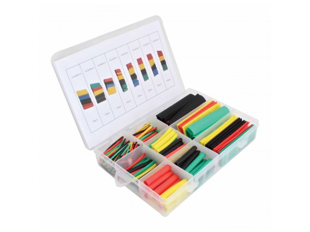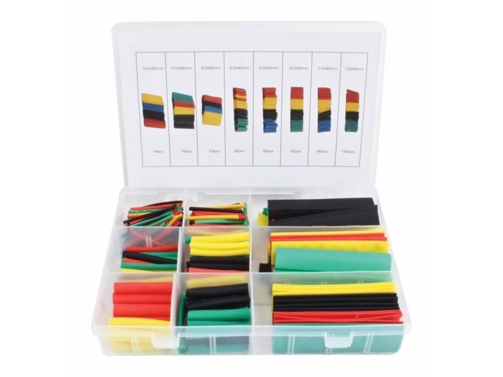 Smršťovací bužírky – hadičky, různé průměry, různé barvy, souprava 328 kusů v plastové kazetě – ASTA A-TC529
