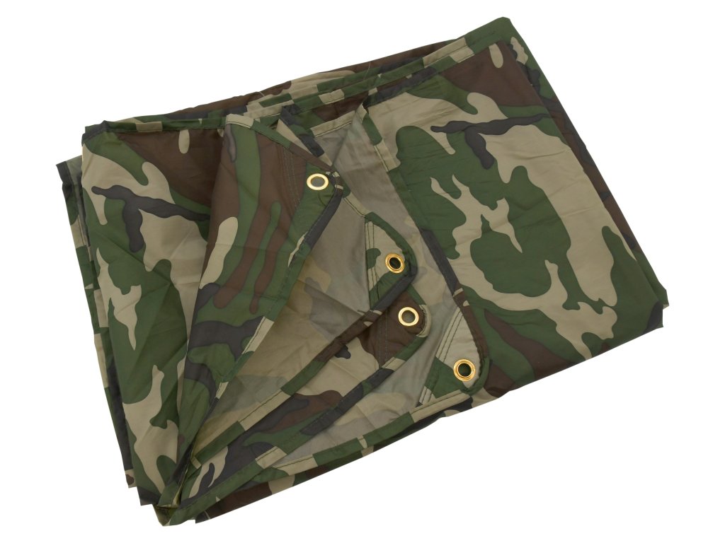 Lehká celta v lesní kamufláži s rozměry 2 x 3 m.