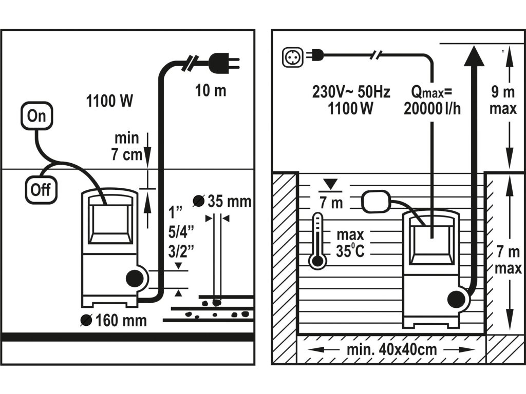 Tělo čerpadla je vyrobeno z nerezavějícího oceli, chránícího zařízení před vnějšími vlivy. Dále je vybaveno plovákovým spínačem, který zabraňuje provozu čerpadla "na sucho". Pro připojení do sítě, je čerpadlo opatřeno kabelem délky 10 m.