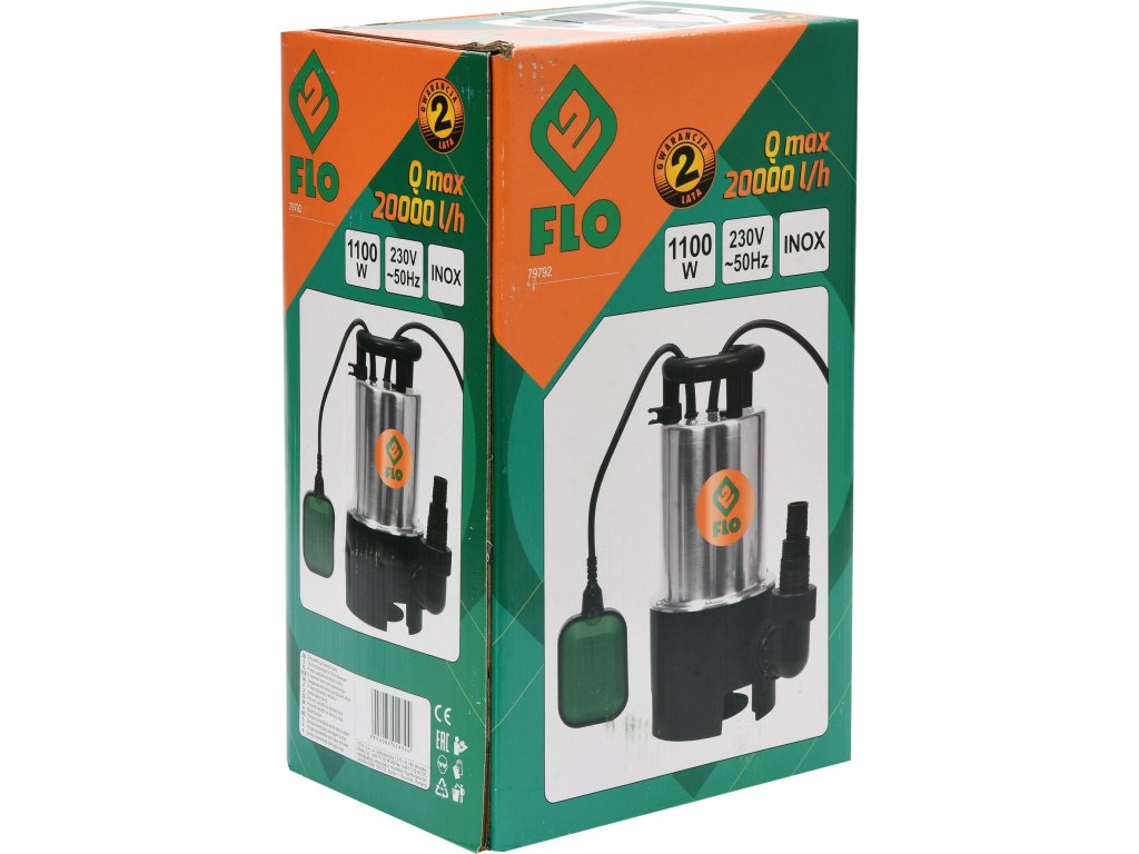 Čerpadlo ponorné nerezové 1100 W 20000 l/h 10m FLO