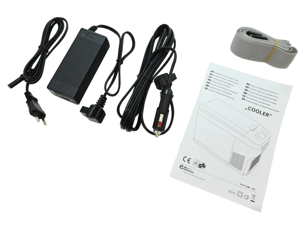 Chladicí box může být napájen z 12 V nebo 24 V zástrčky automobilů či lodí, nebo z běžné zásuvky 230 V. Je vybaven výkonným kompresorem s chladicím médiem a lze jej použít jak jako chladničku s teplotou 0 – 10°C, tak i jako mrazicí box s teplotou až -20°C.