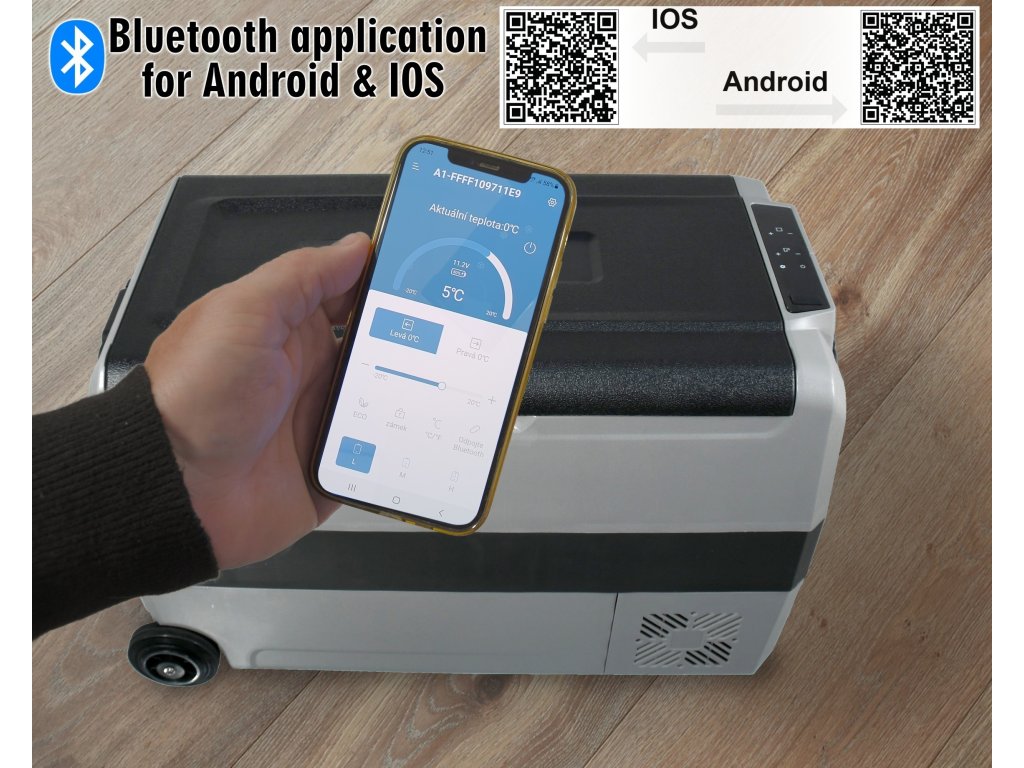 Dále je box vybaven inteligentním systémem ochrany před vybitím připojeného akumulátoru, který lze nastavit skrze menu přístroje. Chladící box je osazen displejem s veškerými ovládacími prvky.