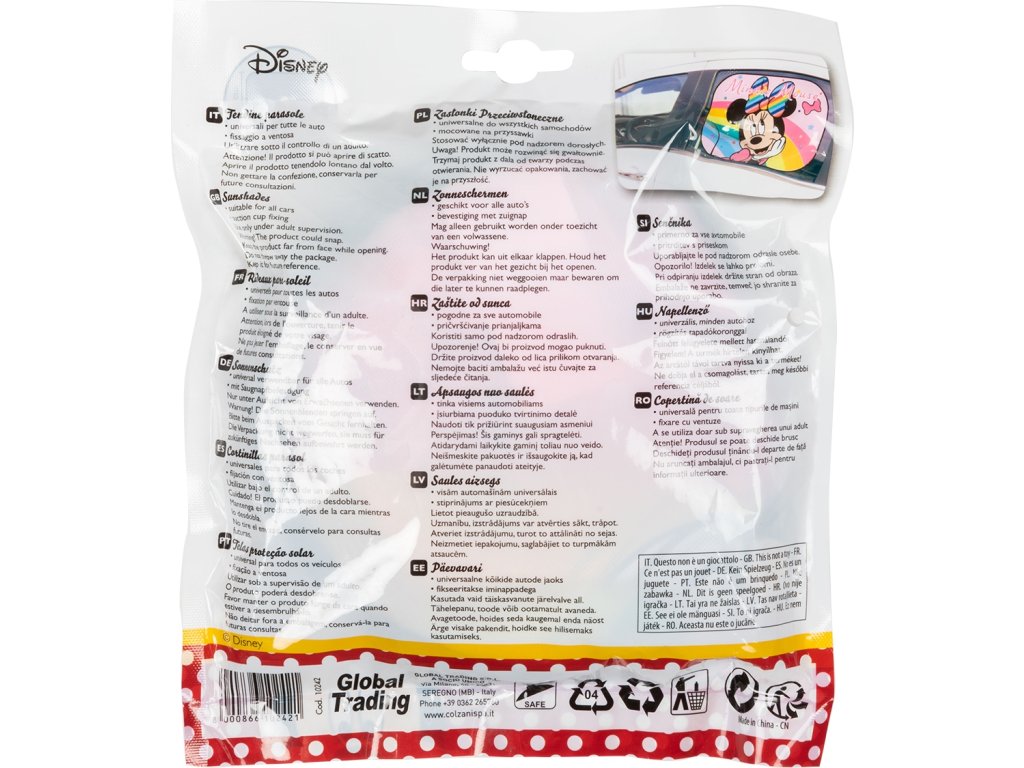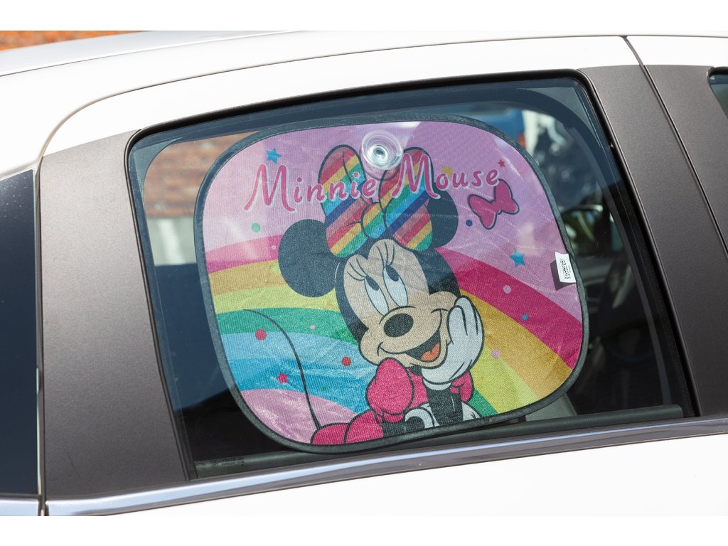 Sluneční clony brání pronikání slunečních paprsků do vozidla. Sada obsahuje 2 ks clonek s dětským motivem Minnie Mouse. Jsou určeny na zadní, nebo boční skla automobilu.