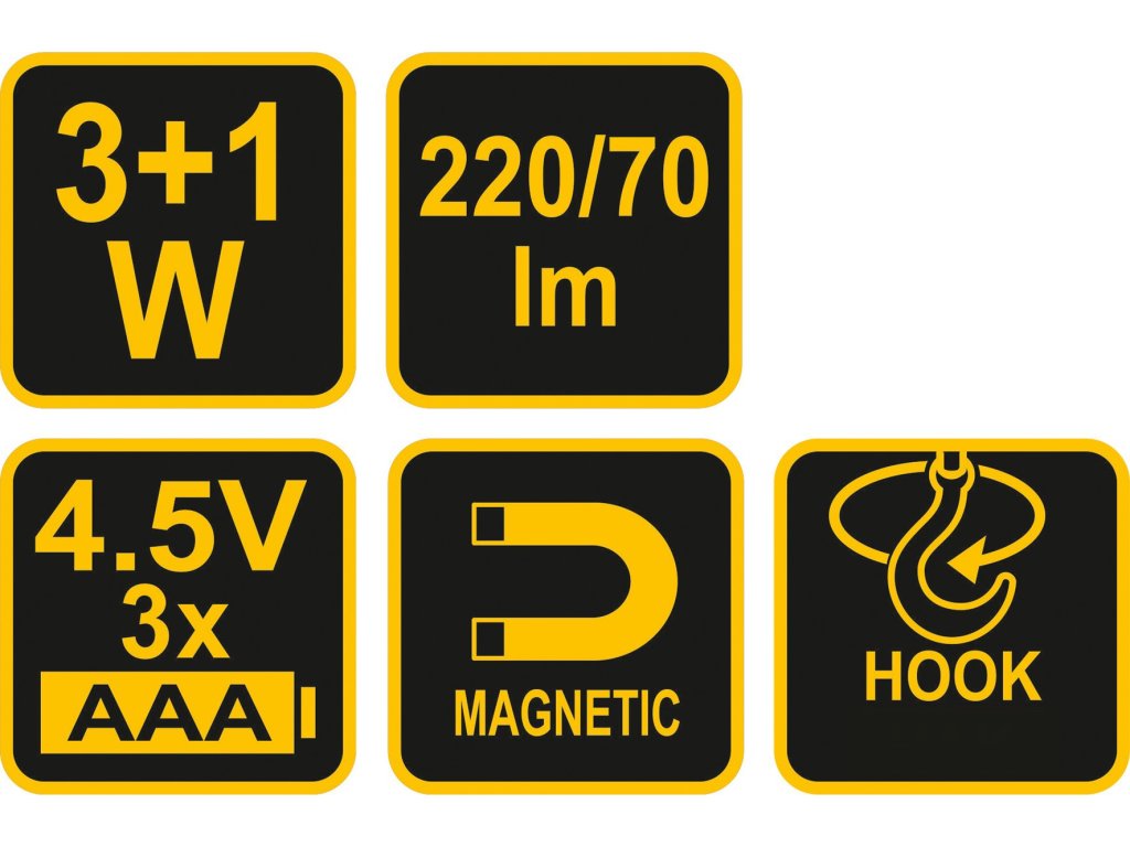 Univerzální dílenská lampa s 360° otočným tělem. Užitečné pro práci vyžadující osvětlení pracovního prostoru v šerých místech a prostředích.