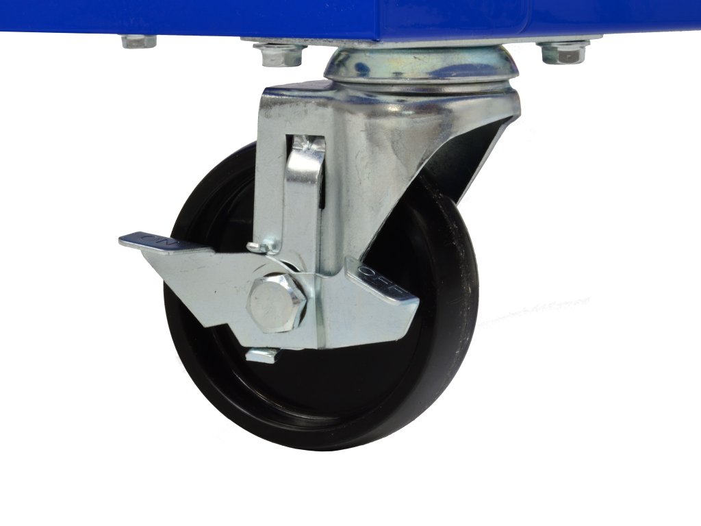 Snadné převážení je možné díky pevnému madlu a velkým kolečkům, z nichž dvě jsou řiditelná a dvě pevná. Díky tomu je eliminováno riziko ujetí celého vozíku do boku a případné poškození okolí, například opravovaného auta. Vozík je možné zabrzdit.