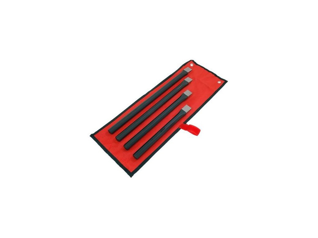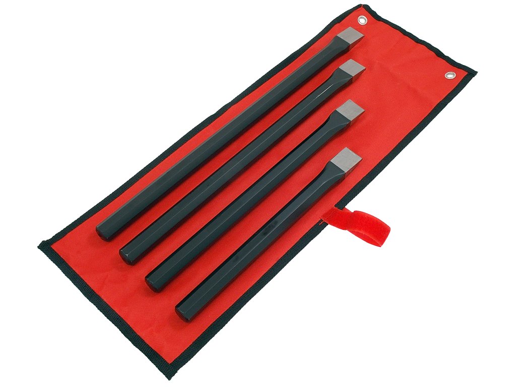 Sada 4 dlouhých sekáčů – majzlíků, extra délka 250-400 mm, v látkovém obalu s očky – QUATROS QS51918 Univerzální využití v autoservisu, dílně, průmyslu, domácnosti atd. např. pro odsekávání zatuhlých či zarezlých součástí apod. Látkový obal s kovovými očky usnadňuje skladování a transport – je možné jej stáhnout pomocí poutka se suchým zipem, popř. zavěsit na zeď. Souprava obsahuje (šířka x délka): - sekáč 18 x 250 mm - sekáč 18 x 300 mm - sekáč 18 x 350 mm - sekáč 18 x 400 mmDoplňkové parametry