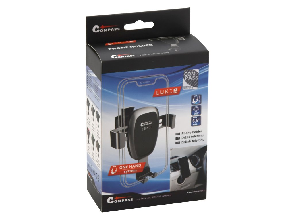 Univerzální držák telefonu řady LUKE pro upevnění do mřížky ventilace a umístěním telefonu jednou rukou.