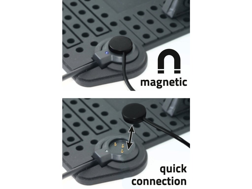 Unikátní systém „magnetic quick connection“ umožňuje rychlé sejmutí telefonu z nabíječky. Když potřebujete vzít telefon do ruky, netáhnete za sebou celý kabel, protože magnetická spojka se lehce sama odpojí.
