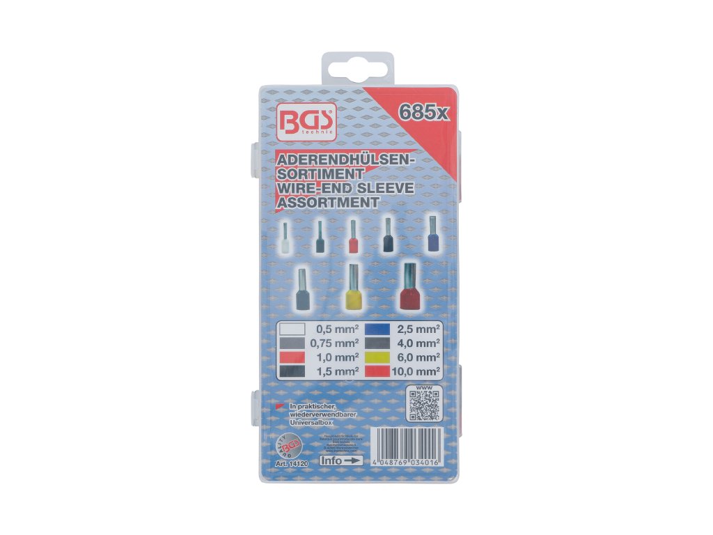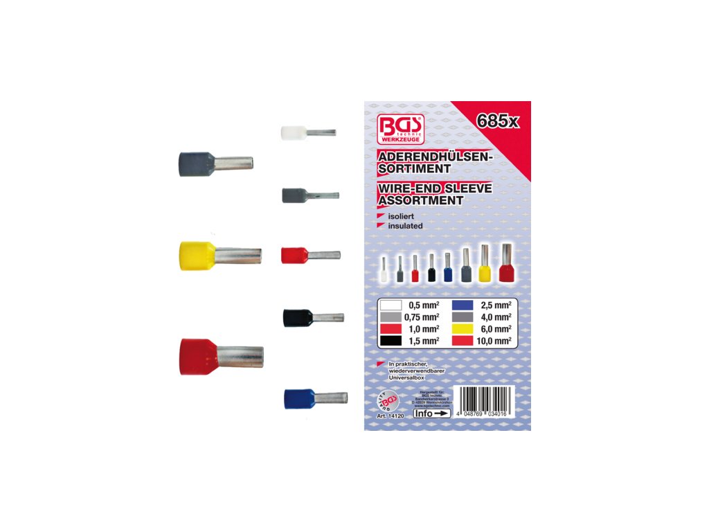 Dutinové elektrické konektory - dutinky 0,5-10,0 mm2, sada 685 ks - BGS 14120