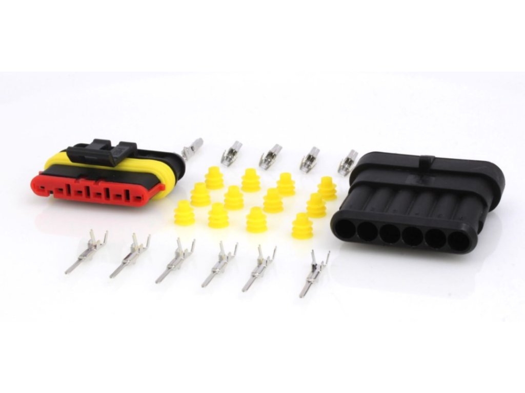 Elektrický hermetický (vodotěsný) konektor se 6 kontakty, tzv. štekr ASTA A-SSC615/1 Vhodný např. pro elektroinstalace v automobilech. Technická data: Průřez drátu: 0,75 mm2 - 1,50 mm2 Průměr kabelu: 1,70 mm - 2,40 mm Maximální proud: 14 A na 1.50 mm2 (při správném zapojení) Rozsah teplota - 40 °C až + 105 °C Materiál pouzdra: PA 6 Stupeň krytí: IP67 Maximální napětí: 24 V Odolnost proti benzínu, naftě, brzdové kapalině, soli.Doplňkové parametry