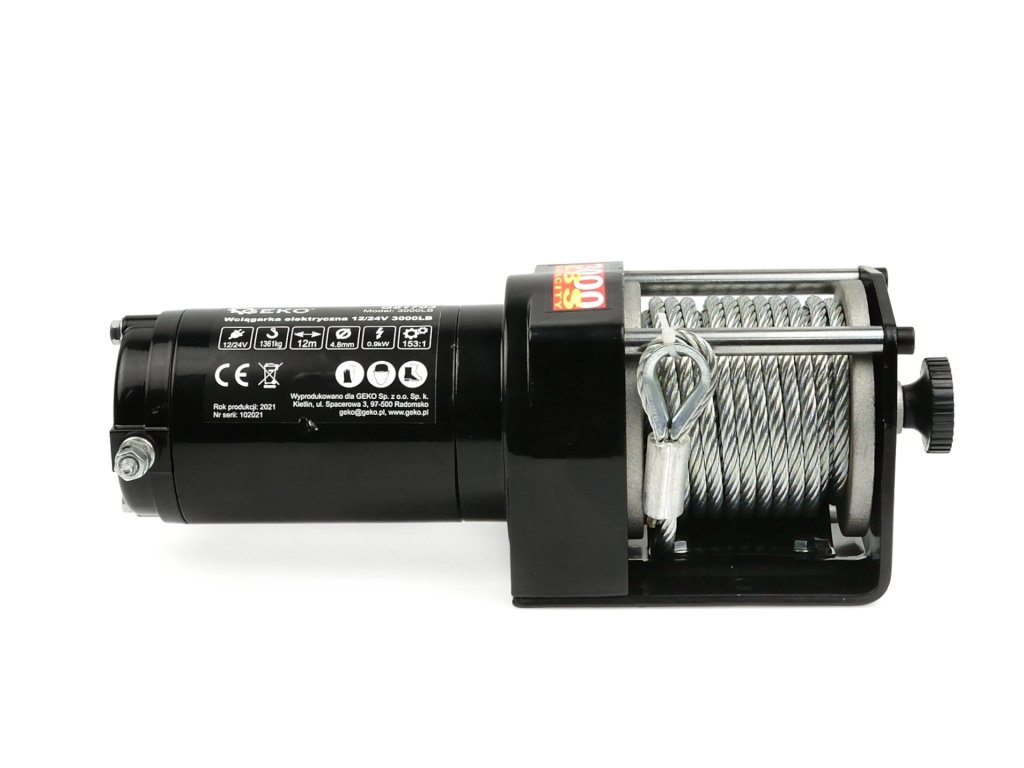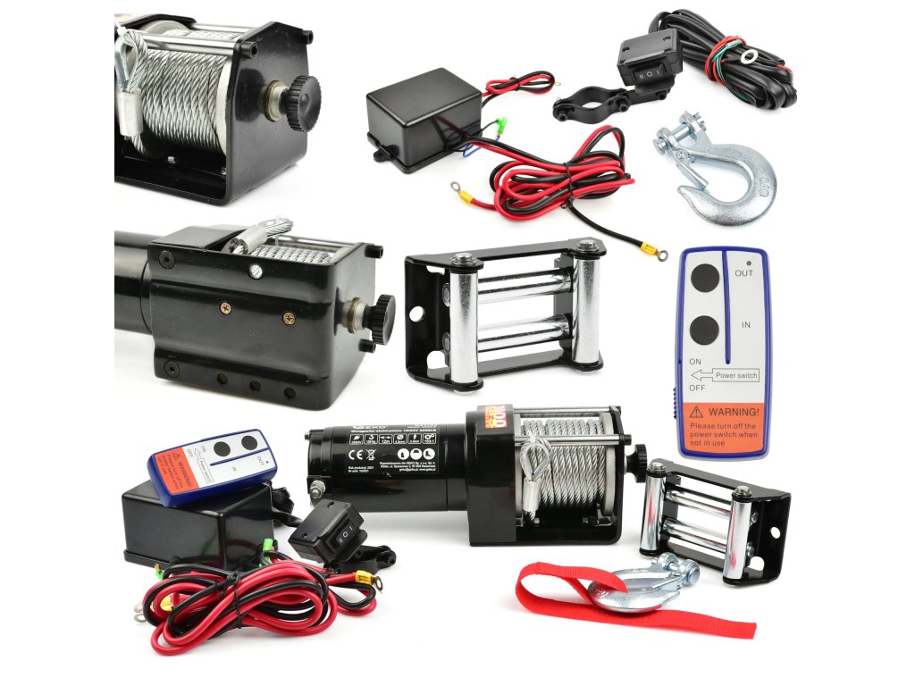 Elektrický lanový naviják pro čtyřkolky a menší terénní vozidla, motor 900 W/12 V, zatížení až 1361 kg – GEKO G81703