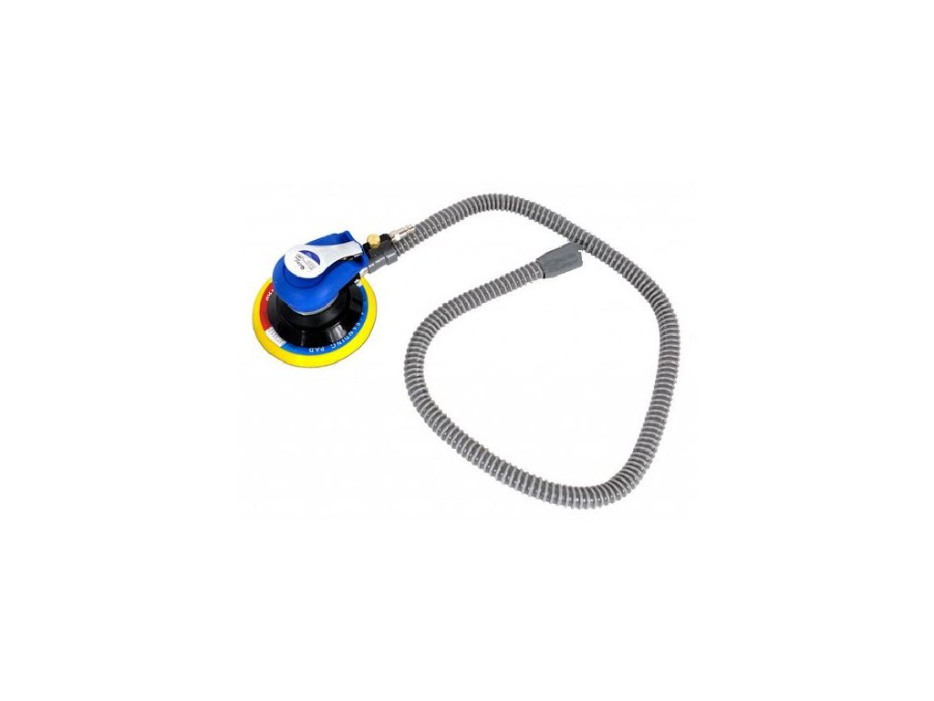 Profesionální pneumatická excentrická bruska s hadicí pro odvod vzduchu, určená pro broušení tmelů, emailových hmot, dřeva nebo plastů. Odsávací kanálek v unašeči brusky brání vzniku prachu. Vhodný spotřební materiál: samolepící brusné kotouče ø 150 mm. Hadice, prachový filtr a vsuvka součástí dodávky.