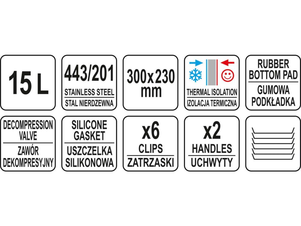 Gastronomický termos YATO je určena restauratérům, hoteliérům a cateringovým aktivitám, od malých banketů po velké venkovní akce. Vyznačuje se nejlepším poměrem ceny a výkonu a kvality produktů na trhu.