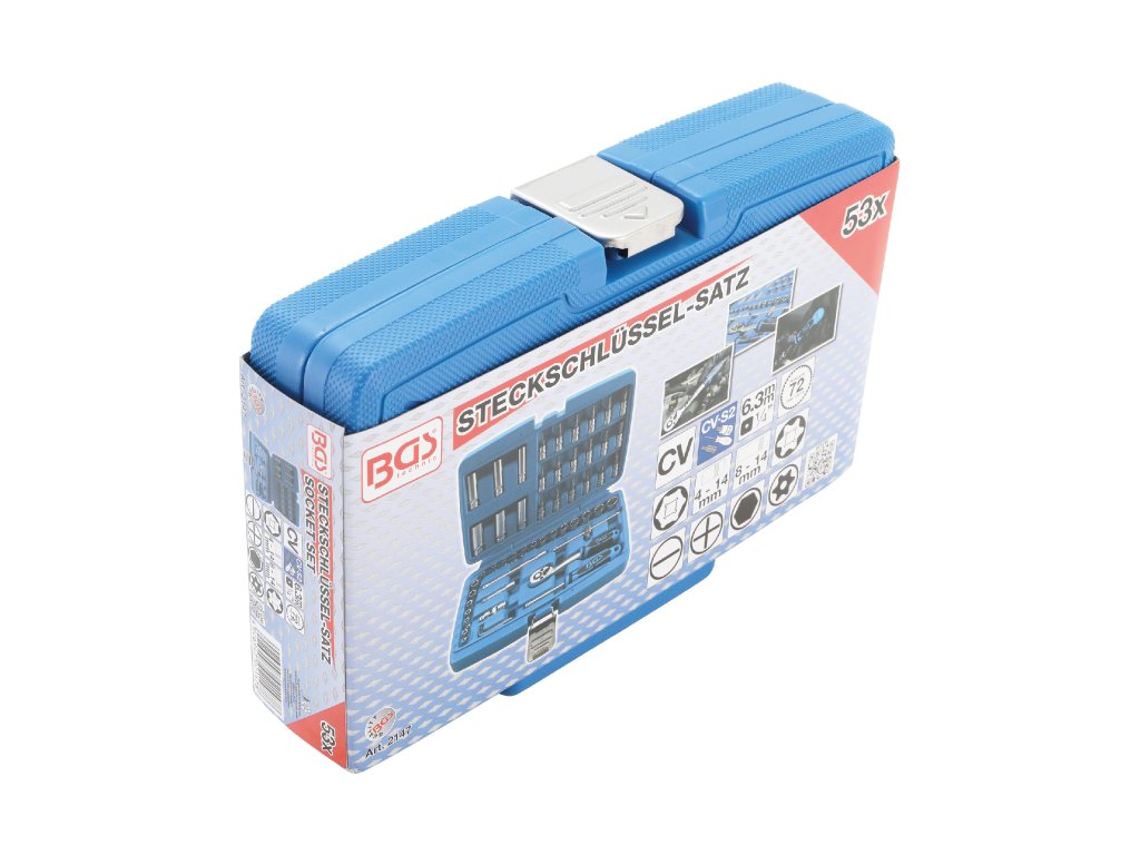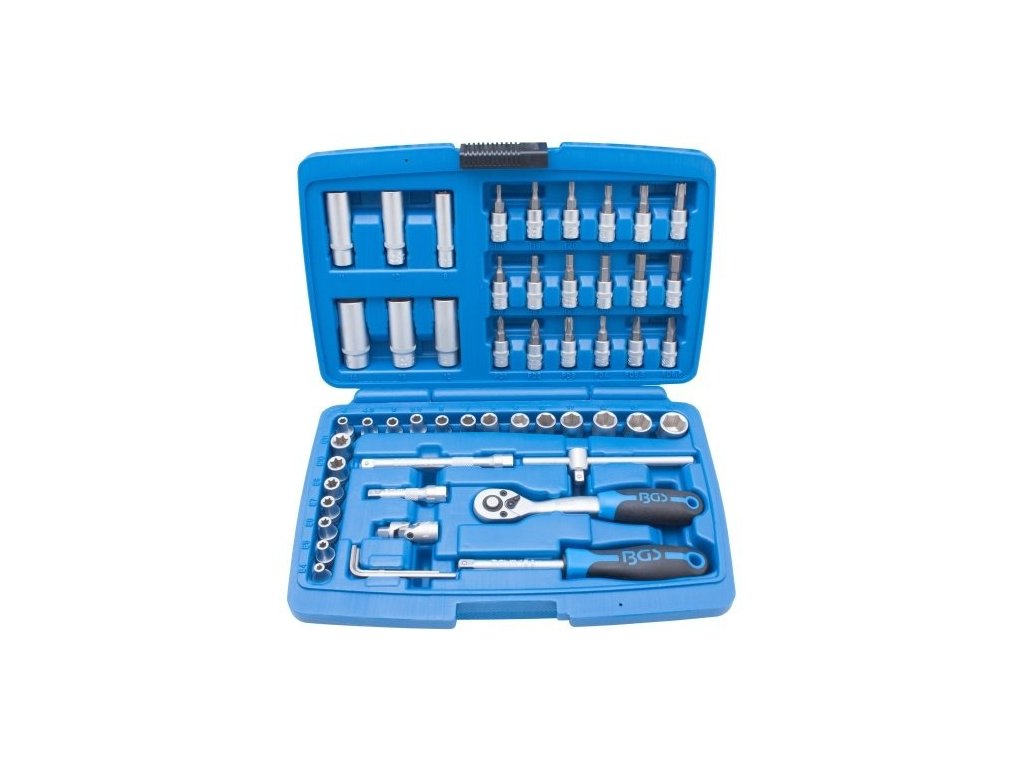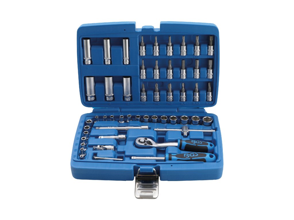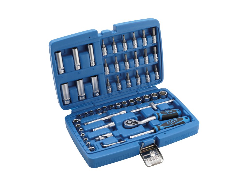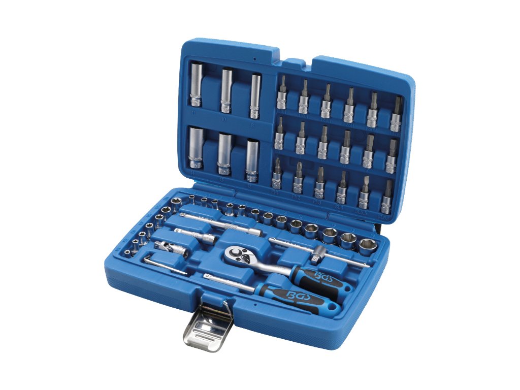 Gola sada s nářadím v metrických rozměrech, vodicí 4hran 1/4“, 52 dílů v plastové kazetě – BGS Technic 2147