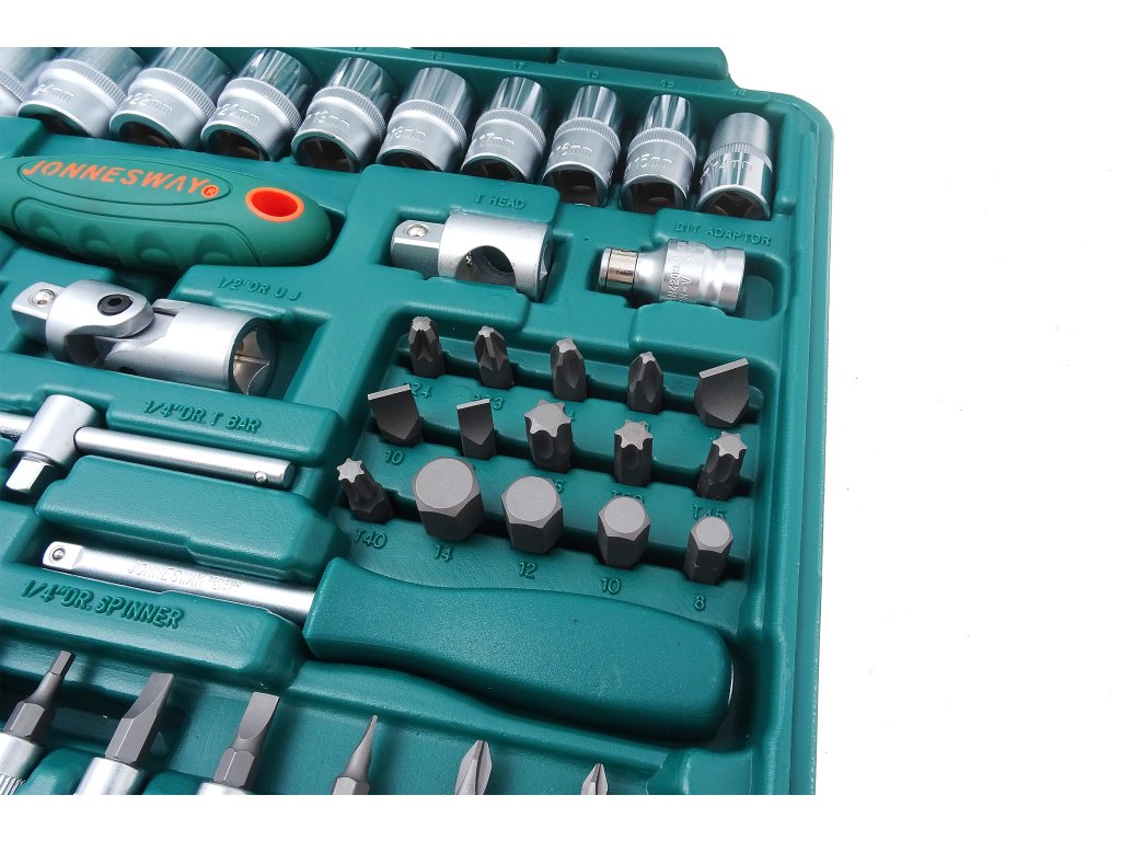 Profesionální kvalita: nářadí JONNESWAY je vhodné pro každodenní profesionální využití. Vyhovuje normám DIN. Nářadí je vyrobeno z kvalitní chrom-vanadové oceli (Cr-V). V případě ztráty některých částí sady je možné naprostou většinu dílů dokoupit i samostatně.