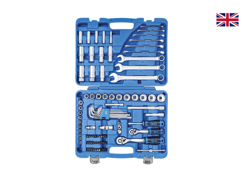 Gola sada s nářadím v palcových – imperiálních rozměrech, vodicí čtyřhrany 1/4” a 3/8”, 92 dílů, v plastovém kufru – BGS technic 2299
