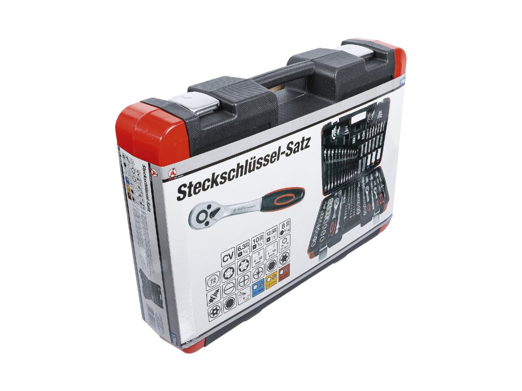 Gola sada s nářadím v metrických rozměrech, vodicí 4hrany 1/4", 3/8" a 1/2", 176 dílů v plastovém kufru – Kraftmann 15217