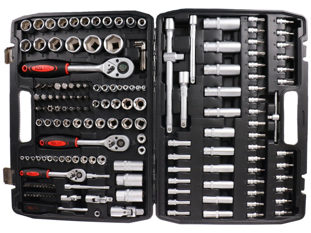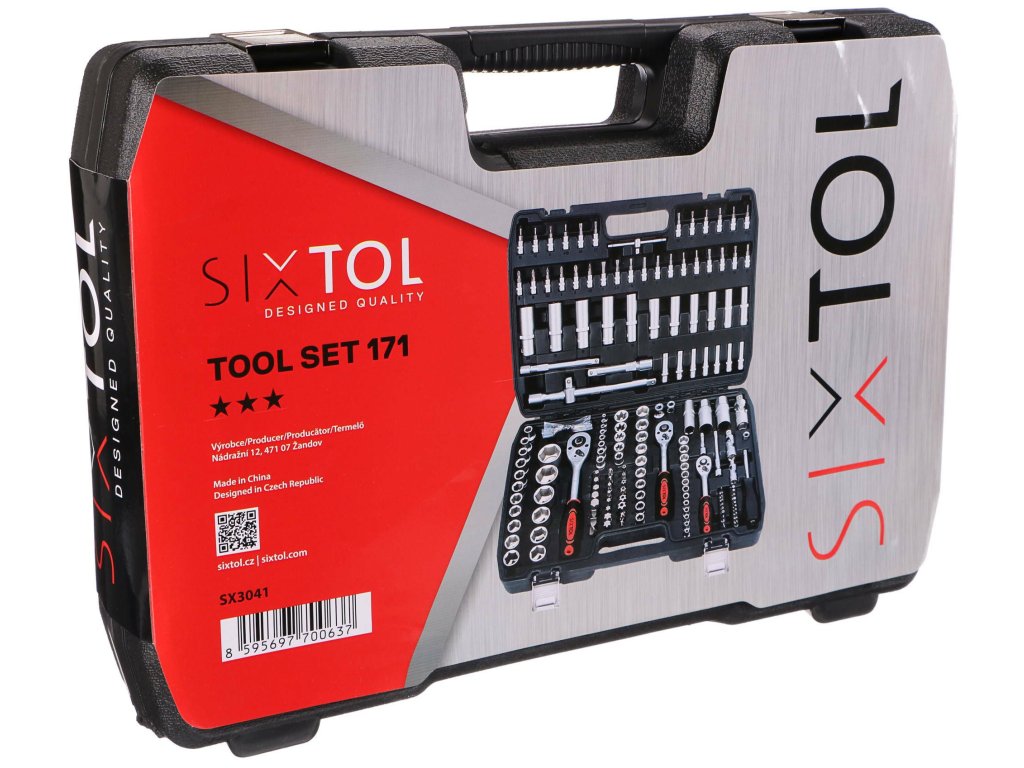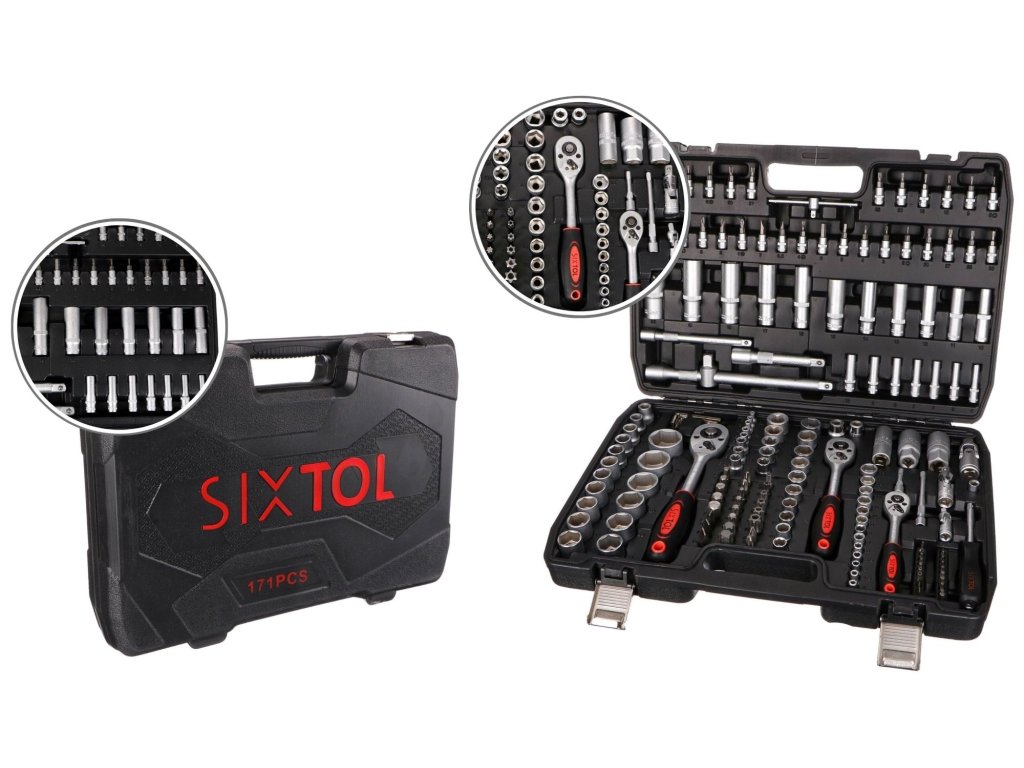 Všestranná Gola sada hlavic a bitů 1/4", 3/8" a 1/2", 171 dílů v pevném kufru – SIXTOL SX3041.