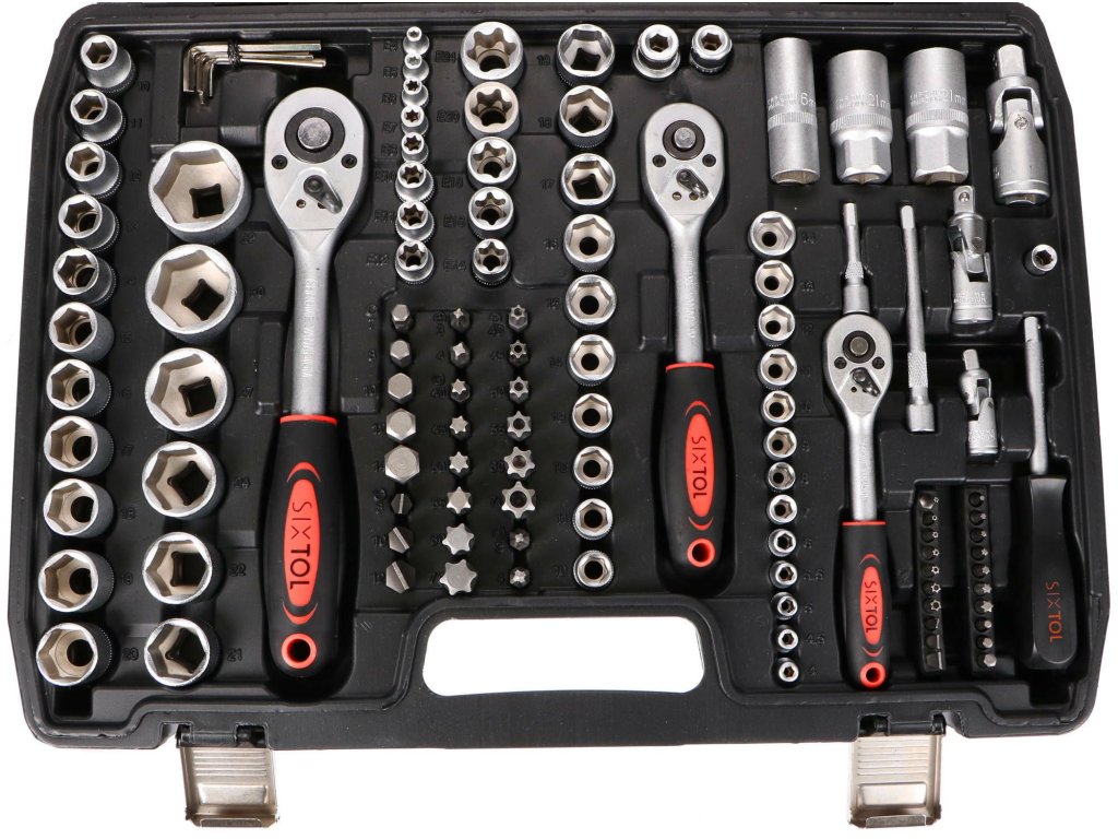 Všestranná Gola sada hlavic a bitů 1/4", 3/8" a 1/2", 171 dílů v pevném kufru – SIXTOL SX3041.
