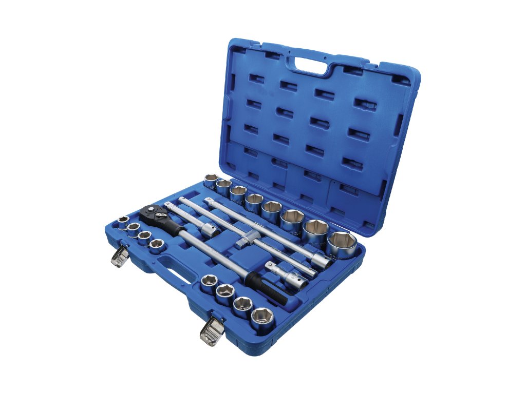 - 16x nástrčná hlavice: 19 – 21 – 22 – 23 – 24 – 26 – 27 – 28 – 30 – 32 – 34 – 36 – 38 – 41 – 46 – 50 mm