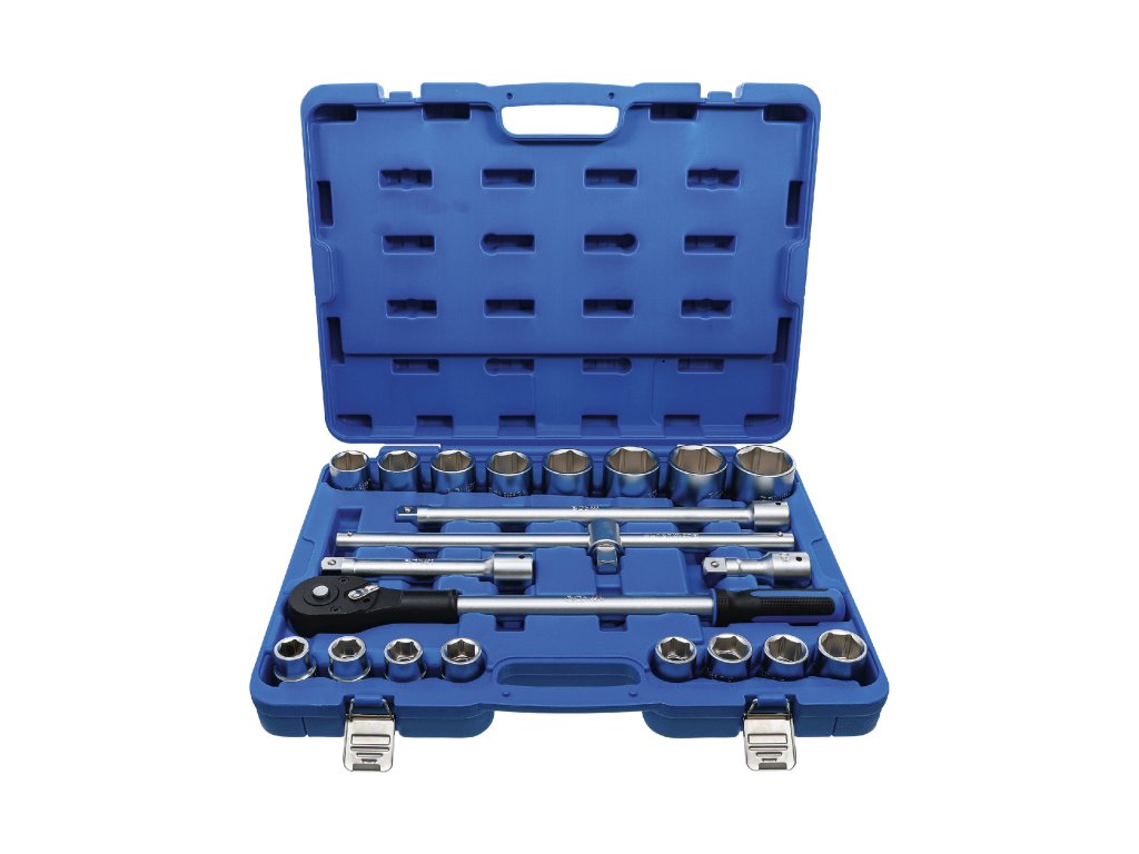 Gola sada s nářadím v metrických rozměrech, vodicí 4hran 3/4“, 21 dílů v plastové kazetě – BGS technic 1207
