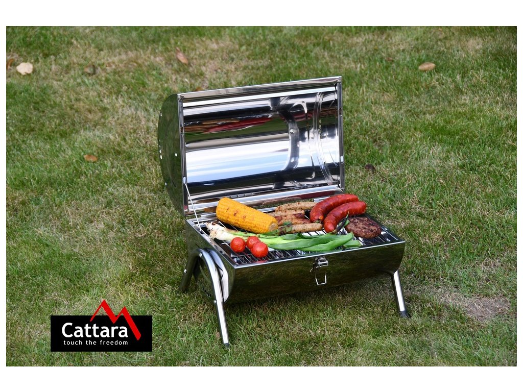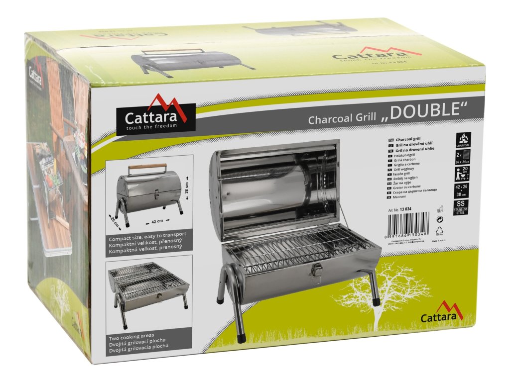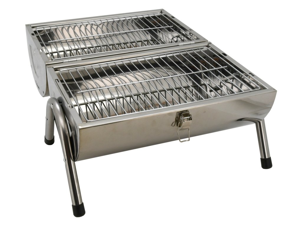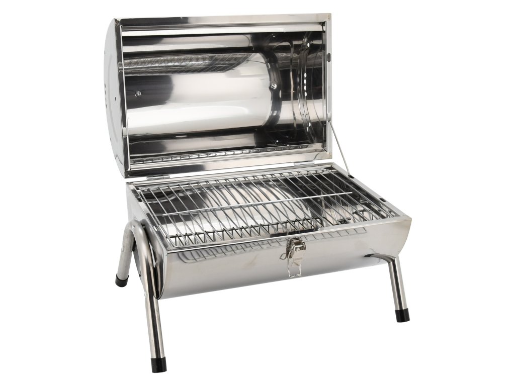 Moderní přenosný gril DOUBLE s atraktivním chromovým designem.