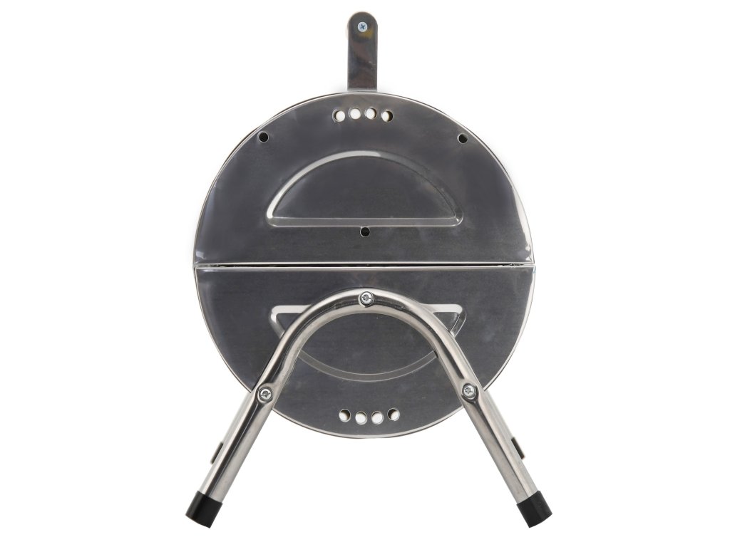 Konstrukce je vyrobena z kvalitního nerezového plechu s leštěným povrchem. Dřevěné madlo zajistí pohodlné přenášení zařízení. Stabilitu zajištují čtyři kovové nohy, přišroubované k tělu grilu.