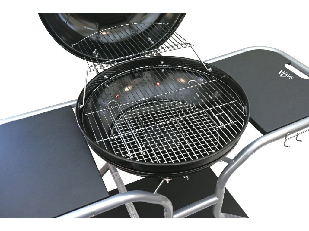 Pro tepelnou přípravu Vašich pochutin je gril opatřen roštem z chromované oceli o průměru 54 cm ve výšce 81 cm a je doplněn odkládací mřížkou pro udržení teploty již hotových pokrmů.
