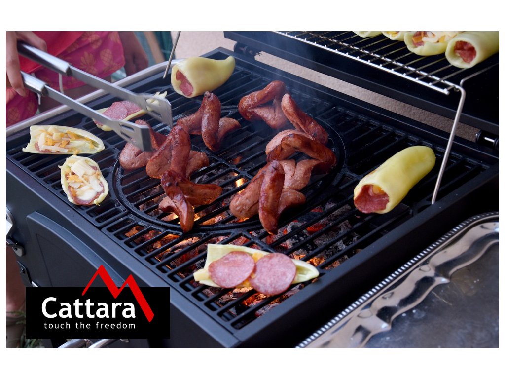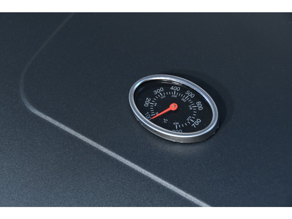 Pro samotnou tepelnou přípravu Vašich pochutin je gril opatřen třídílným litinovým roštem s kulatým středem, kde je možné po vyjmutí umístit např. grilovací pánve a podobné. Dále je opatřen odkládacím roštem pro udržení teploty již hotových pokrmů. Vyklápěcí víko je opatřené teploměrem pro stálou kontrolu teplot uvnitř grilu.