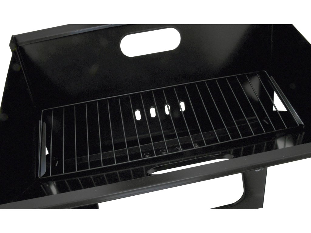 Pro tepelnou přípravu pochutin je gril opatřen ocelovým roštem a plochou 42,5 x 26 cm ve výšce 36,5 cm. Ventilace na čelní a zadní straně konstrukce zajistí plynulý přísun vzduchu.